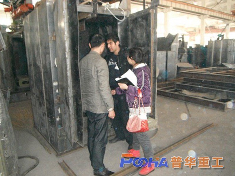 伊朗客戶Mr.Mohammad于2012年4月中旬,專程來我廠洽談Q69與Q38系列拋丸機(jī)的訂購事宜圖為客戶參觀我廠車間,我廠相關(guān)工作人員正向客戶介紹機(jī)器情況