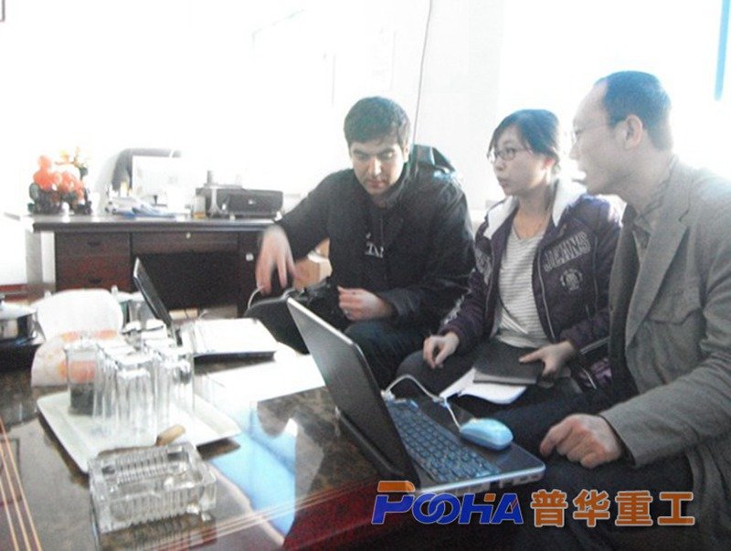 圖為客戶與我廠技術(shù)人員交流機(jī)器情況